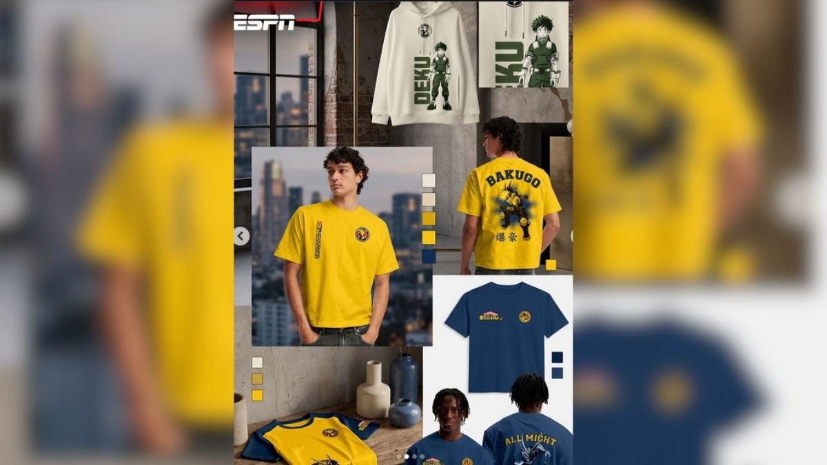 La colección, disponible a partir del 1 de mayo en tiendas Suburbia, presenta diseños que buscan equilibrar estética y simbolismo. Entre las piezas más destacadas se encuentra una sudadera blanca con la imagen de Deku acompañada del escudo del América, una playera amarilla inspirada en Bakugo que incorpora elementos visuales del anime en katakana, y una camiseta azul marino dedicada a All Might, donde el personaje aparece en la parte posterior mientras el emblema del club se mantiene al frente.